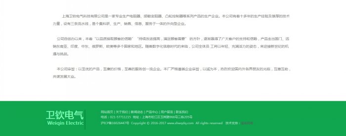 上海衛(wèi)欽電氣科技有限公司是一家專業(yè)生產(chǎn)電阻器、頻敏變阻器、凸輪控制器等系列產(chǎn)品的生產(chǎn)企業(yè)。本公司有著十多年的生產(chǎn)經(jīng)驗及雄厚的技術(shù)力量,設(shè)有三條流水線,是個集科研、生產(chǎn)、銷售、信息、服務(wù)于一體的外向型企業(yè)。公司自創(chuàng)辦以來,本著“以品質(zhì)換取顧客的信賴”“持續(xù)改進提高,滿足顧客需要” 的方針,逐漸贏得了廣大客戶的支持和信賴,產(chǎn)品走出國門、遠(yuǎn)銷東南亞、印度、中東、俄羅斯、歐美等多個國家和地區(qū)。隨著數(shù)字化信息時代的來臨,公司全體員 工將以年輕、充滿活力的姿態(tài),來迎接新世紀(jì)的機遇與挑戰(zhàn)。
