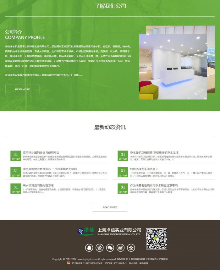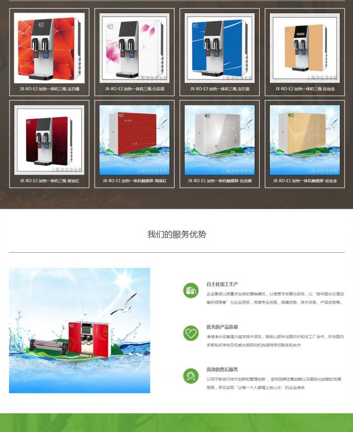 公司介紹:凈信凈水機(jī)隸屬于上海凈信實(shí)業(yè)有限公司,是經(jīng)國(guó)家工商部門(mén)批準(zhǔn)注冊(cè)的經(jīng)營(yíng)家用凈水機(jī)、直飲機(jī)、管線機(jī)、純水機(jī)、商務(wù)機(jī)的凈水設(shè)備制造商,專(zhuān)業(yè)從事研發(fā)、生產(chǎn)和經(jīng)營(yíng)凈水設(shè)備,產(chǎn)品包括家用純水機(jī)、直飲機(jī),軟水機(jī)、商用純水機(jī)、超濾凈水機(jī)、無(wú)膽即熱管線機(jī),中央凈水器,各種凈水耗材,大型水處理設(shè)備、等。主營(yíng)產(chǎn)品為家用和商用RO純水機(jī)及配套的水家電產(chǎn)品以及軟水凈水設(shè)備,已建數(shù)百個(gè)渠道惠及千萬(wàn)家庭,定制近百個(gè)校園直飲水BOT專(zhuān)案,并承接賓館、酒店、社區(qū)、單位等大型直飲水工程項(xiàng)目。