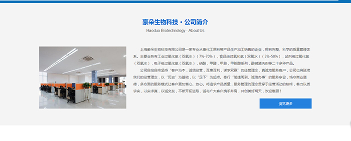 上海豪朵生物科技有限公司是一家專業(yè)從事化工原料等產(chǎn)品生產(chǎn)加工銷售的企業(yè),擁有完整、科學(xué)的質(zhì)量管理體系。主要業(yè)務(wù)有工業(yè)過氧化氫(雙氧水)(7%-70%),食品級(jí)過氧化氫(雙氧水)(3%-50%),試劑級(jí)過氧化氫(雙氧水),電子級(jí)過氧化氫(雙氧水),硝酸,甲醇,甲胺,甲胺醇系列,酸堿清洗劑等二十多種產(chǎn)品。