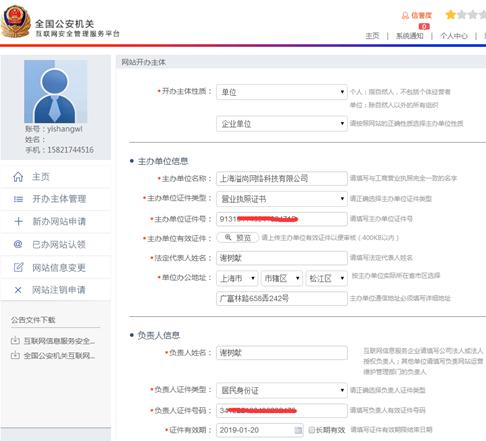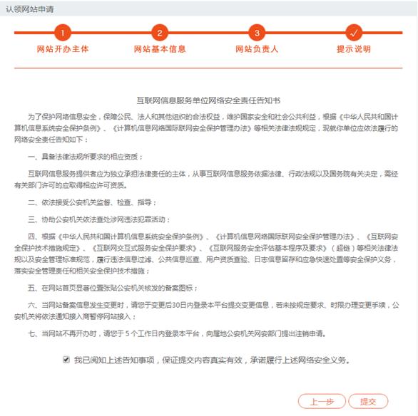 都填好后提交,等待審核就好了,審核通過后有一個網(wǎng)安備案號碼。