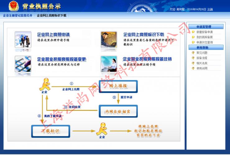 第五步:選擇“企業(yè)網(wǎng)上亮照申請”